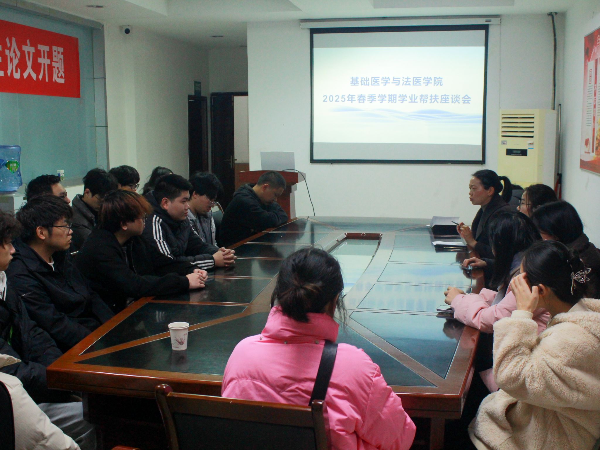 近日,学院学业帮扶座谈会在司法鉴定中心会议室召开,旨在切实解决学生学业困难,促进学生全面发展。学院党委副书记胡铭峡、21级班主任王威、22级班主任张伟、辅导员及两个年级的学生共同参会。