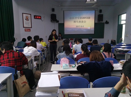 为进一步了解学生真实想法,持续推进教学合理改革,提升教育质量。5月2日,法医学系在顺庆校区第二教学楼405教室召开了2013级师生座谈会。法医学系副主任杜冰、教务科科长谢英、学生科辅导员田馨雅以及13级全体学生参加了本次座谈会.