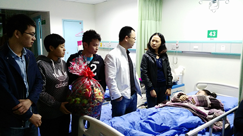 该同学所在班级的学生干部和部分同学也一同前往看望慰问。