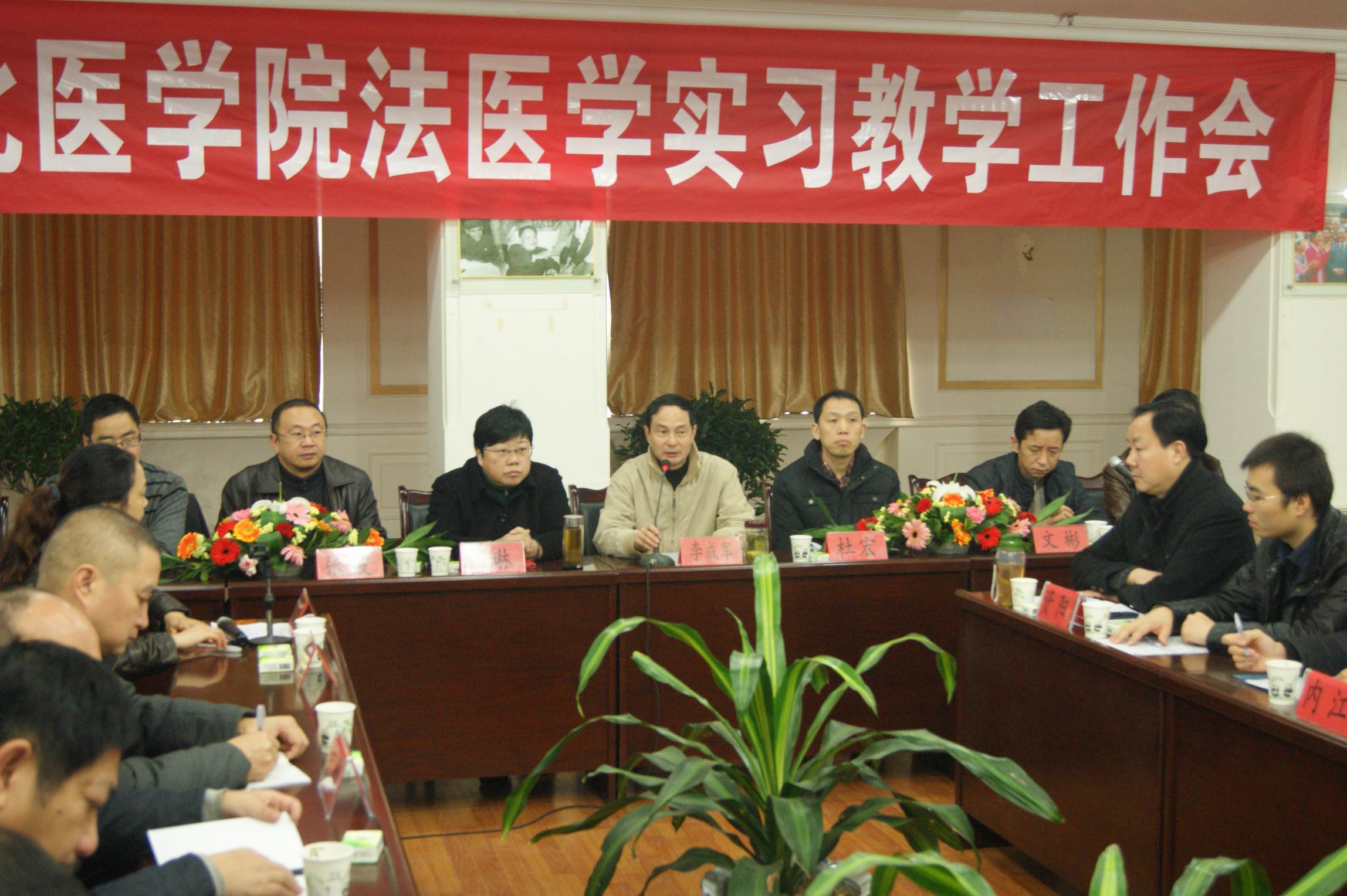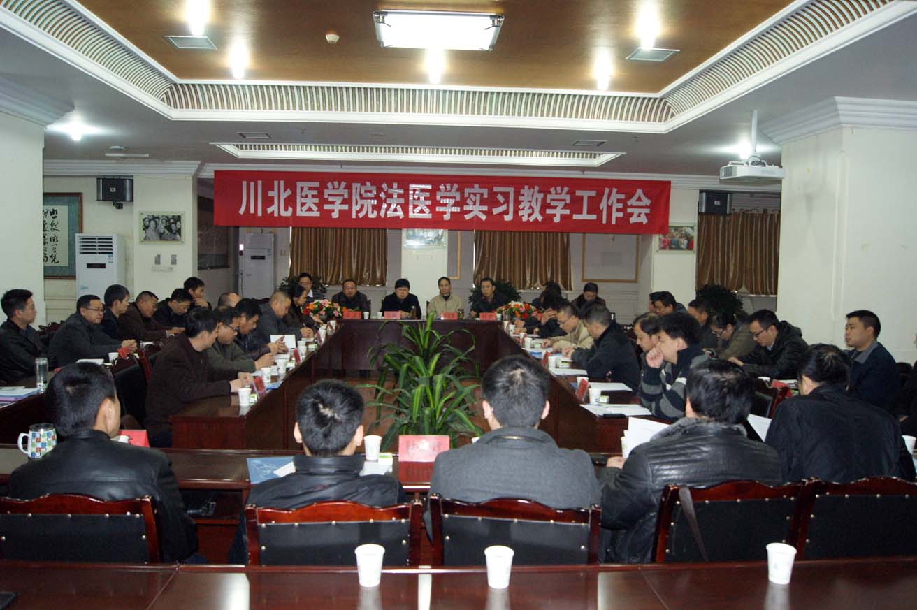 12月5日上午,川北医学院法医学实习教学工作会在顺庆校区召开,学院党委副书记李成军,南充市公安局副局长张琳,四川省公安厅刑侦局法医科科长杜宏,法医学系主任张波等领导及嘉宾和来自全省十六市公安局,南充市精神病医院,阆中市人民医院等实习基地的教师代表参加会议。
