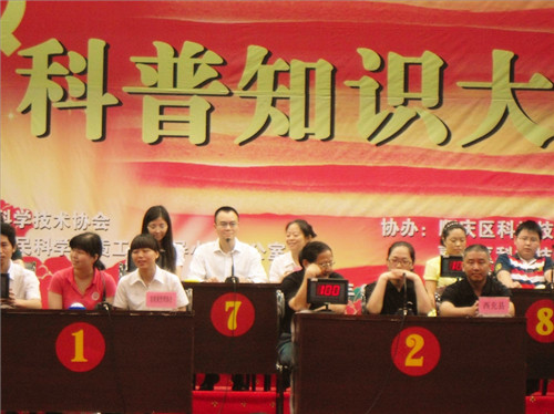 为庆祝中国共产党成立90周年,深入贯彻落实科学发展观,普及“科学发展 科学生活”理念,提升市民科学素质,南充市科学技术协会、南充市全民科学素质工作领导小组办公室主办的“南充市庆祝中国共产党成立90周年科普知识大赛”团体比赛于6月23日在南充市委会议厅隆重举行,南充市副市长朱家媛等领导出席观看了比赛。