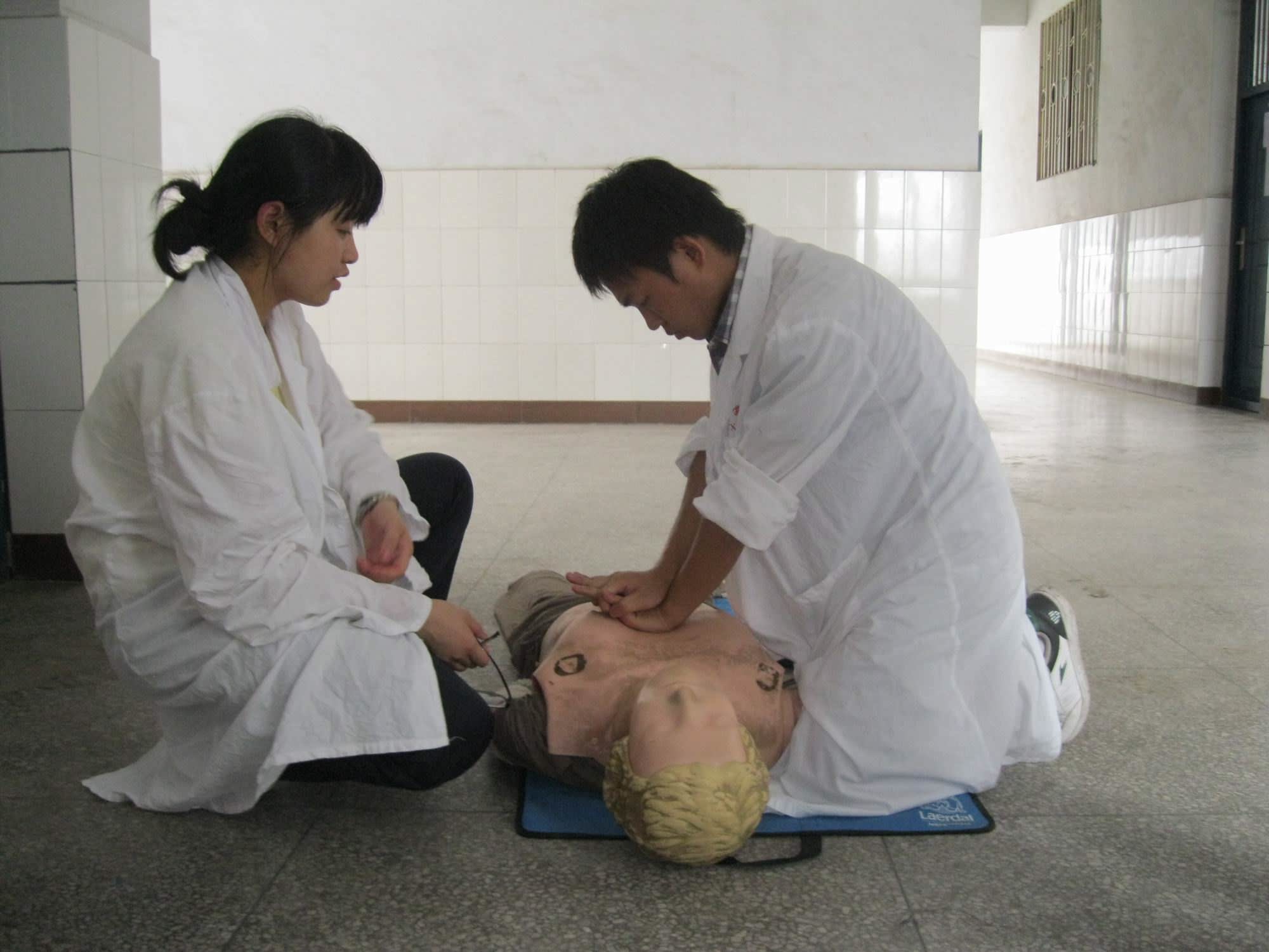 7月4日和5日下午,10余名队员来到川北医学院附属医院急诊科,参加由急诊科副主任刘世平副教授指导的急救技能培训。刘主任作了急诊知识的简要介绍和说明,强调掌握急救知识在突发事件中的重要性,鼓励队员认真学习,积极思考,并以人体模型为操作对象,指导队员如何进行CAB急救操作。队员逐个亲自操作,老师发现不足之处,再一一纠正。第二天,创伤的急救处理措施是培训重点,在老师细心的讲解和现场演示后,队员们也动手进行处理创伤的基本操作。两天的技能培训很快过去。虽然培训时间较短,队员的操作手法还不能达到较高标准,但队员纷纷表示将利用空余时间,勤加练习,保证达到合格水平。