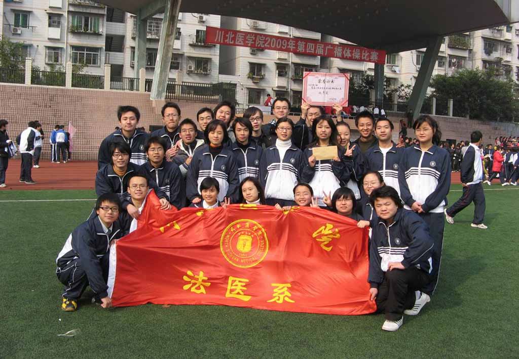 敢闯敢拼,齐心协力,共创佳绩!2009年11月21日上午9:30,川北医学院第四届广播操比赛在西校区足球场隆重举行。学生处副处长鲜颖等领导和老师出席并担任评委。随着彩旗队的出场拉开了比赛的帷幕。通过前期的积极训练,我系2007级1班参加了比赛,嘹亮的口号,铿锵的步伐,整齐划一的动作,充分展示了同学们的精神风貌。通过近2个小时的激烈竞争,最终我系2007级1班以敢闯敢拼的精神荣获优秀奖。