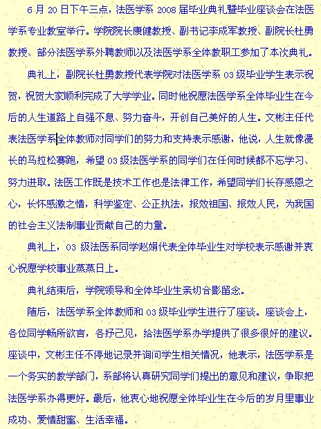 法医学系举行2008届毕业典礼暨毕业座谈会