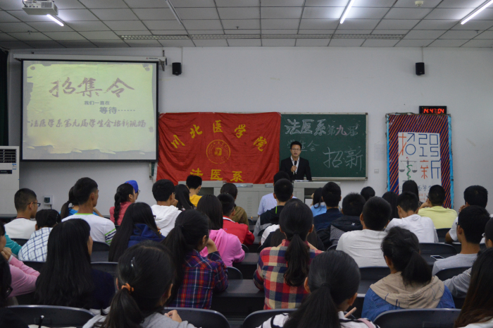 2015年9月26日下午,川北医学院第九届法医学系团总支学生分会招新活动在图书信息大楼205开展,法医学系学生会主席团以及各部门部长担任了本次招新面试官。