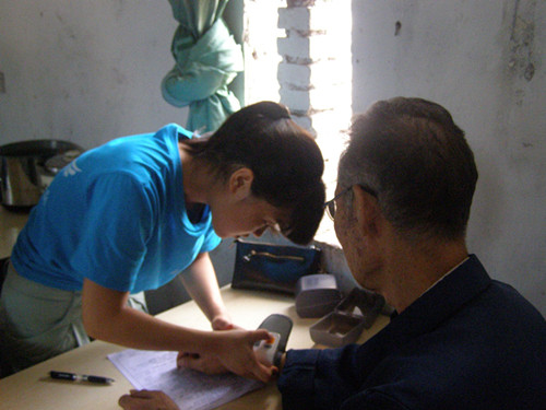 7月16日早上8点,川北医学院法医学系赴北碚水土镇社会实践服务团正式开始在敬老院的义诊活动。本次义诊由水土镇卫生院完成,服务团做相关辅助工作。