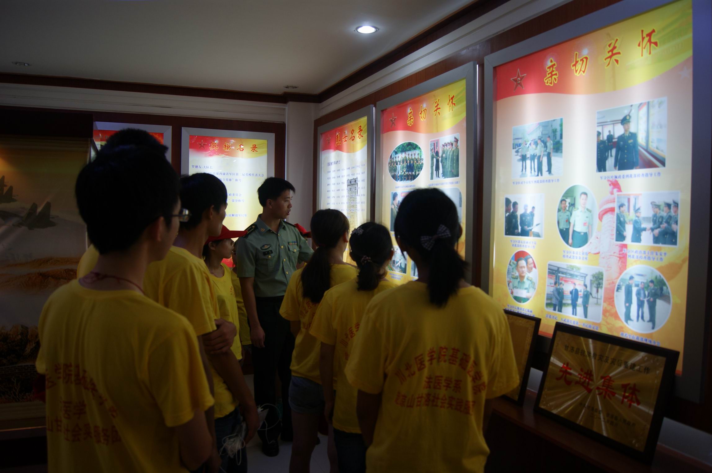 7月14号早上8:30,经过半个小时急行军的川北医学院法医系志愿服务团来到了甘洛县人民武装部,同学们的激动之情溢于言表。少校李刚代表武装部的众多官兵对我志愿服务团的到来表示热烈欢迎,随后,李少校带领同学们先后参观了荣誉室、会议厅、图书馆、健身房。期间,李以亲切的笑容和耐心细致的讲解,充分展现了军人的风采,同学们对军人也有了更深入的认识。