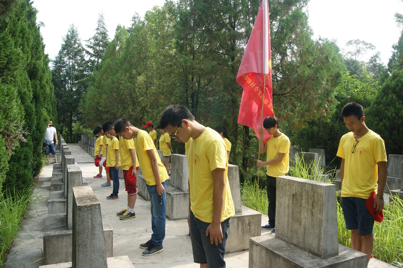 为缅怀革命烈士、弘扬爱国主义精神,7月15日上午,我服务队成员前往甘洛县烈士陵园,在当地同学的带领下,同学们依次参观了革命烈士纪念碑、革命烈士陵墓等,并合影留念。同学们在烈士墓碑前低头鞠躬并默哀,寄托对烈士的哀思。