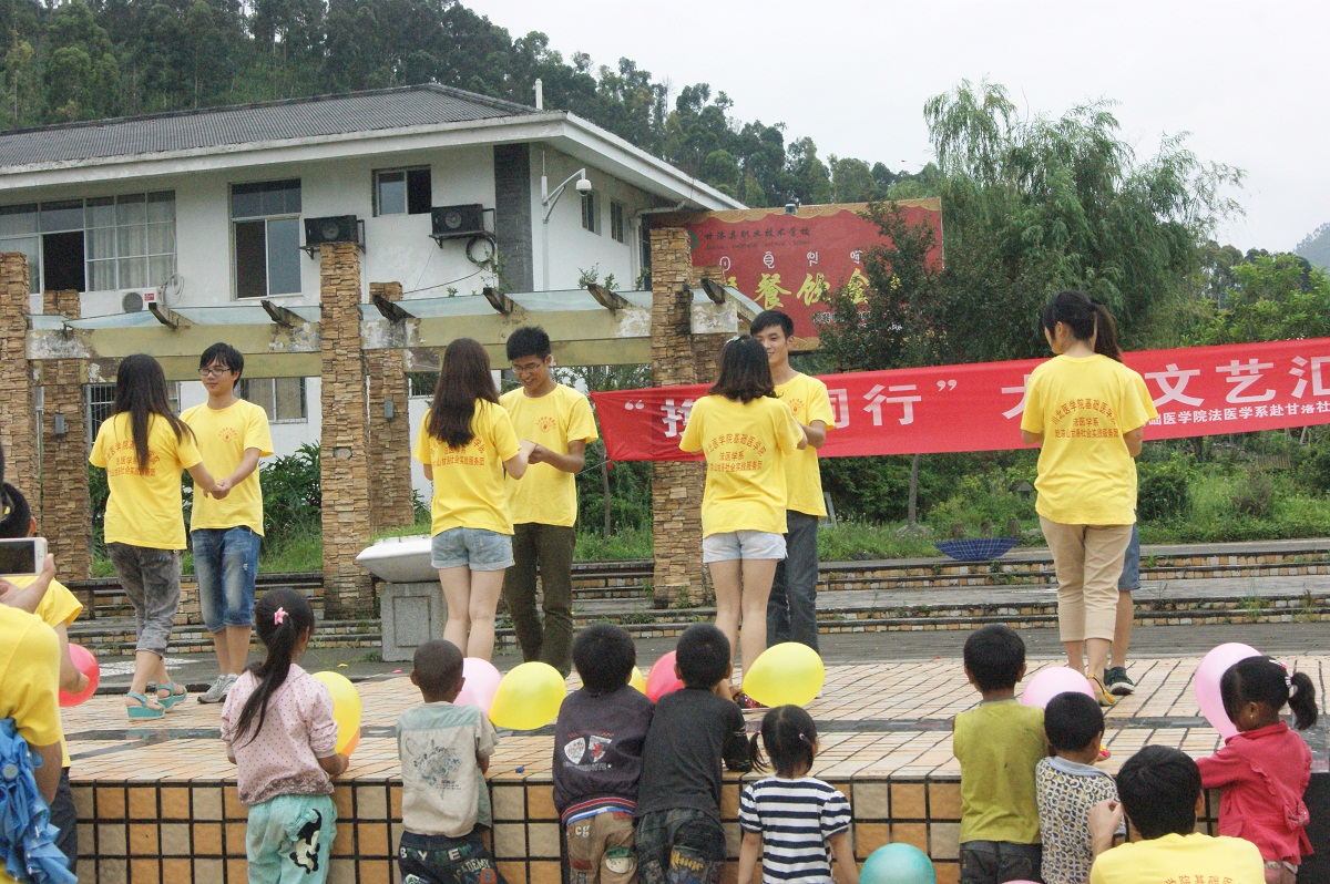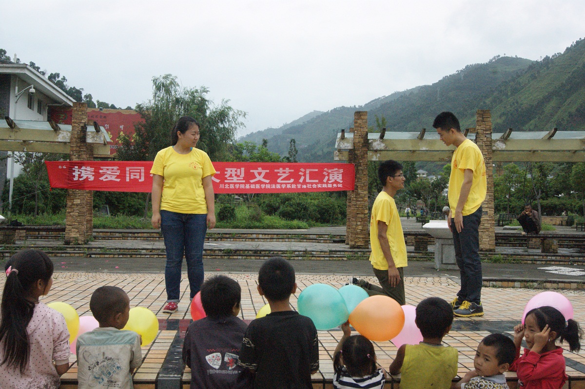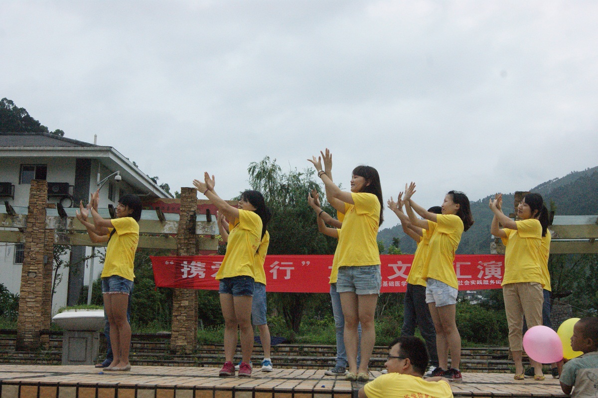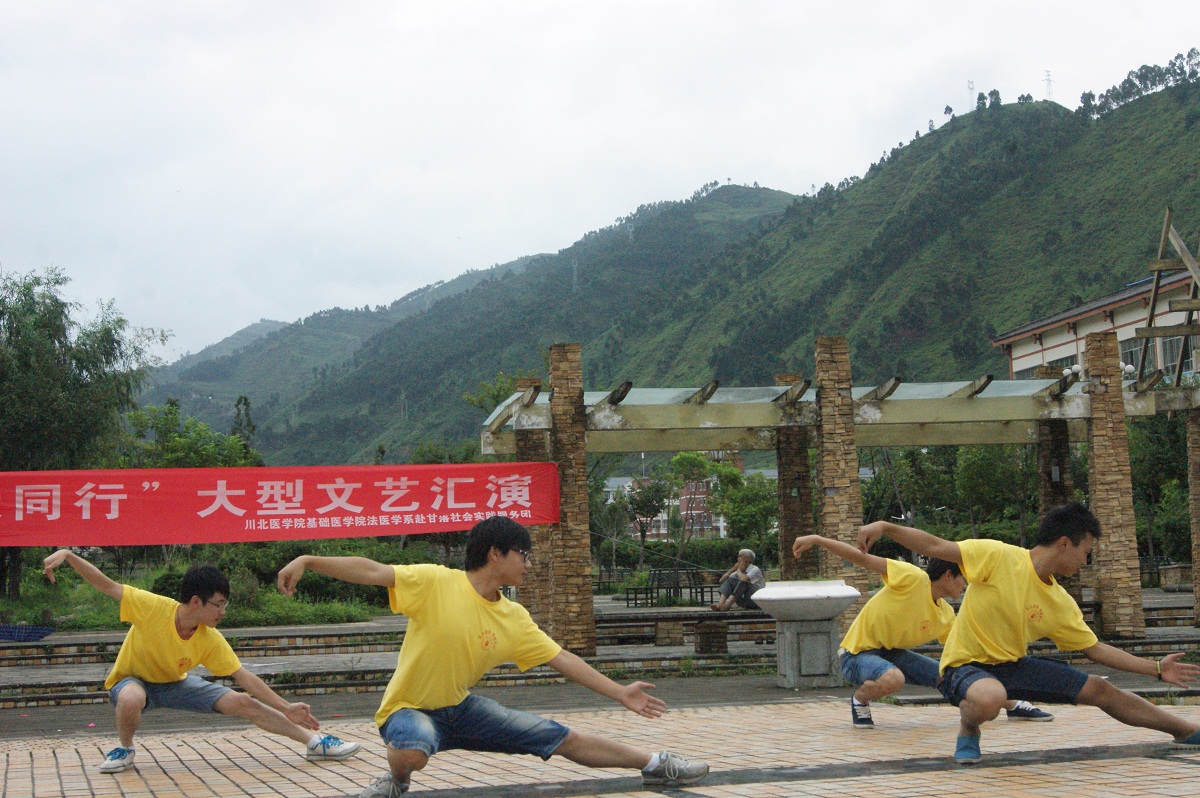 7月18晚6:00,主题为“携爱同行”的川北医学院法医系“三下乡”文艺汇演在甘洛县美丽的月琴广场举行。此次文艺汇演的举办得到甘洛团县委、甘洛县疾控中心的支持,出席嘉宾有团县委书记罗俊杰、疾控中心预防科主任王晓林等。晚会由“三下乡”队员带来的爵士舞拉开帷幕,随后小品、歌曲、相声、华尔兹、太极等精彩节目轮翻上阵,赢得了现场观众的阵阵掌声。小品《将心比心》以夸张的动作、贴近生活的语言把观众逗得哈哈大笑;独唱《酒后心声》的队员的深情演绎赢得不断的掌声;年轻的队员们跳起华尔兹虽显青涩,但那认真的态度让人丝毫不怀疑他们付出的努力;最后,由“三下乡”彝族队员带来的彝族歌曲《敬酒歌》为文艺汇演画上圆满的句号,也标志着2013年川北医学院法医学系赴甘洛暑期“三下乡”社会实践志愿服务活动顺利结束!