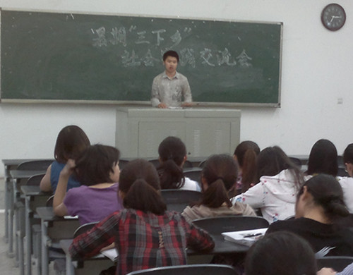 我系团总支学生分会于4月24日晚在高坪校区举办本年暑假“三下乡”社会实践交流暨动员大会,辅导员金波及09-11级部分同学参加。
