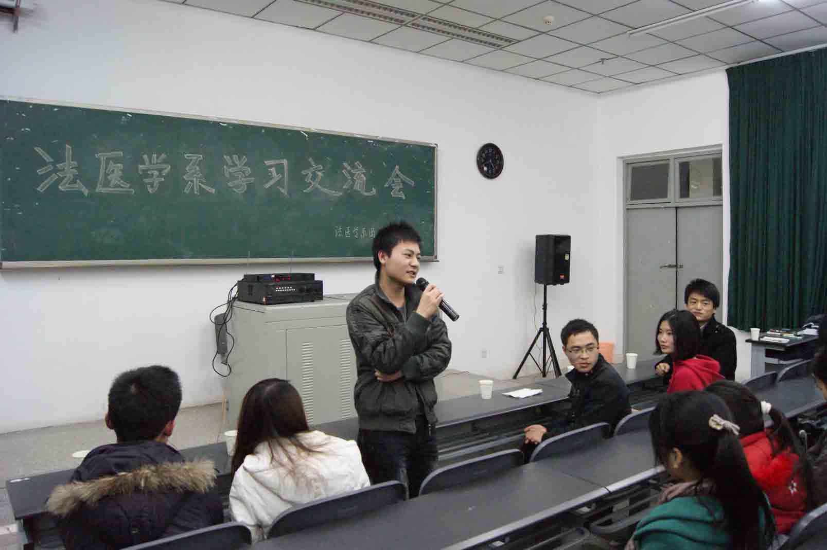 12月11日在新区103教室举办了法医学系学习交流会,辅导员金波、各年级优秀学生代表级及2010、2011级全体同学参加本次交流会。各优秀学生代表分别讲述他们的学习方法、技巧,强调对学习首先要在思想上重视,要对所学知识从整体上把握,制定适合自己的学习目标,做好大学规划,并坚定的执行计划,才能学有所成。代表们在讲台上挥洒自如的神采和气度,深深感染着在座的每一位同学——成功没有捷径,一分耕耘,方有一分收获。报道:张 姝(2010级)