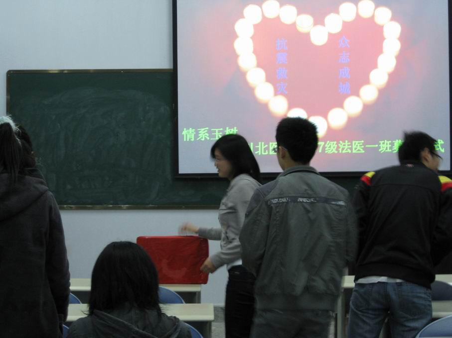 4月22日,是全国人民为玉树灾区遇难同胞的默哀日,为了表示对灾区遇难同胞的关怀,我系07-09级同学分别在各自校区举行默哀与募捐活动,募捐活动共凑集善款近900元。地震无情,人间有爱,也许我们的力量是微薄的,但我们的爱是无限的,献出我们的这份爱,为玉树灾区同胞祈祷,愿你们早日创建好更美好的家园!
