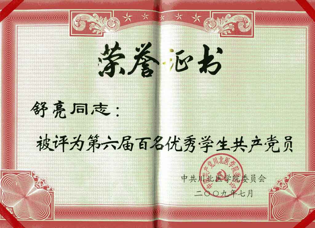 舒亮,男,198710月生,浙江金华人,200611月加入中国共产党,来自法医学系200501班。其主要事迹如下: