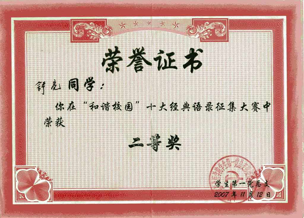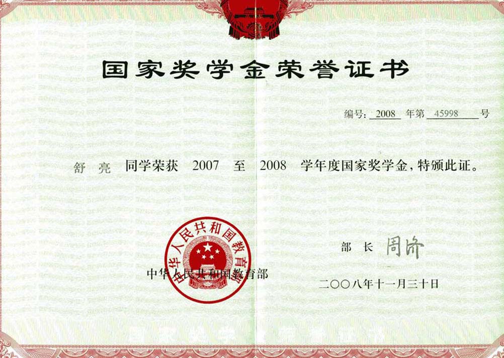 学习:连续4年荣获奖学金,国家(一等)奖学金一次,学院二等奖学金两次、三等奖学金一次。一次性通过全国CET四、六级及计算机二级。